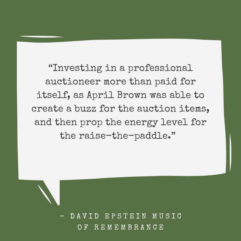 Seattle Charity Auctioneer April Brown is celebrating 29 years as a charity auctioneer. Charities from across America book their Charity Auction, Auction Galas, Ask and Paddle Raise, Fundraising events and consult with the auction professional that sets records and increases profits.